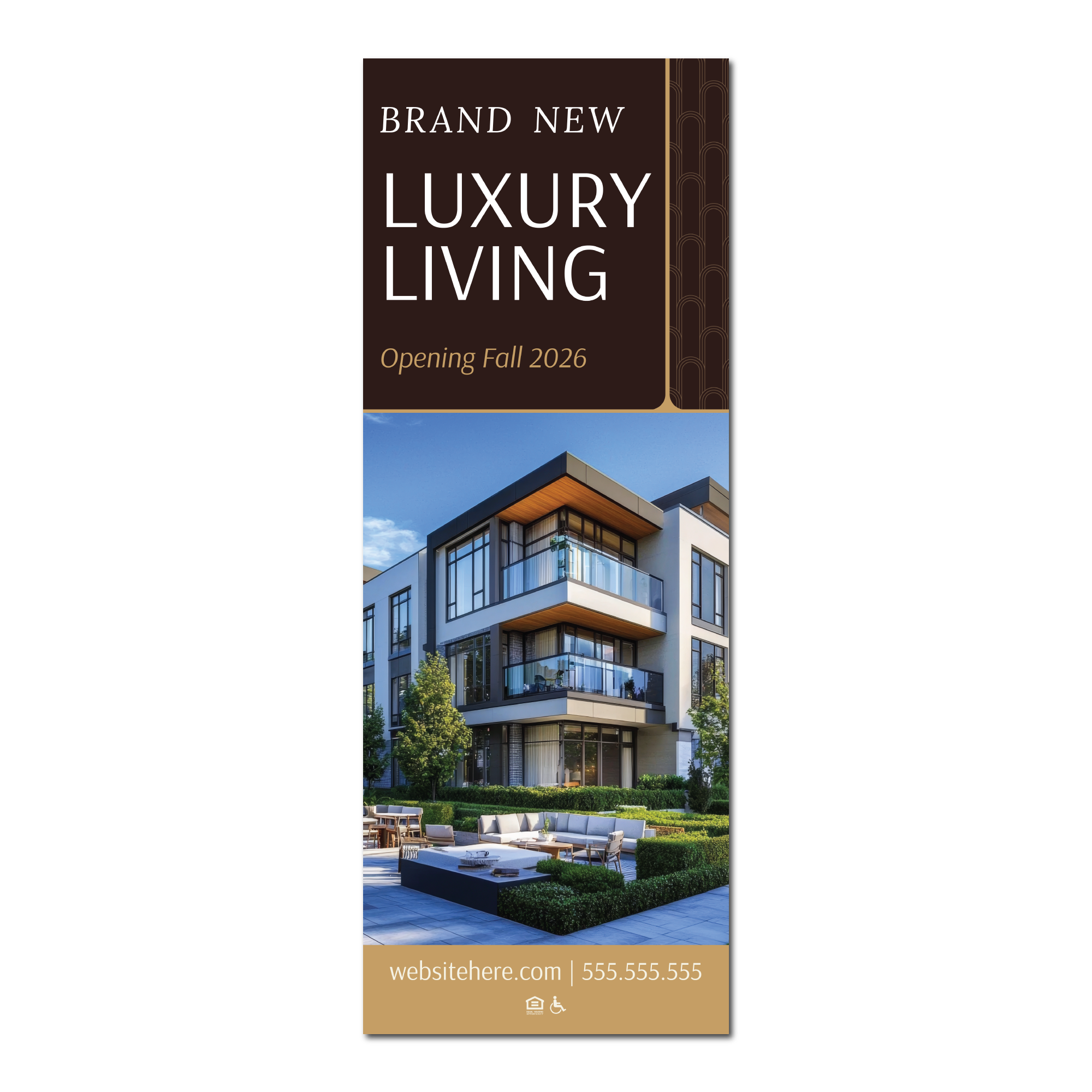 Use/Application: Flyer door to door, hand to someone after a tour along with a brochure, keep on the front desk for residents to see and take with them