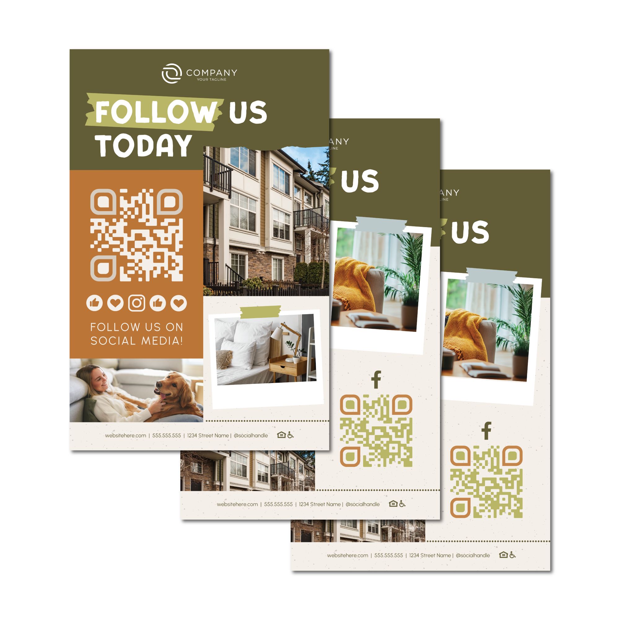 Use/Application: Flyer door to door, hand to someone after a tour along with a brochure, keep on the front desk for residents to see and take with them